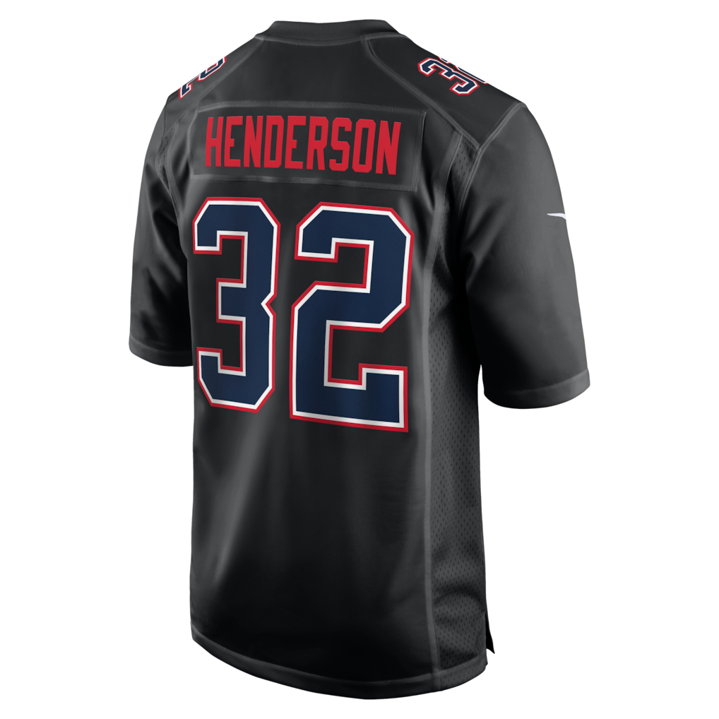 Men's New England Patriots TreVeyon Henderson Black Super Bowl LX Patch Carbon Fashion Game Jersey