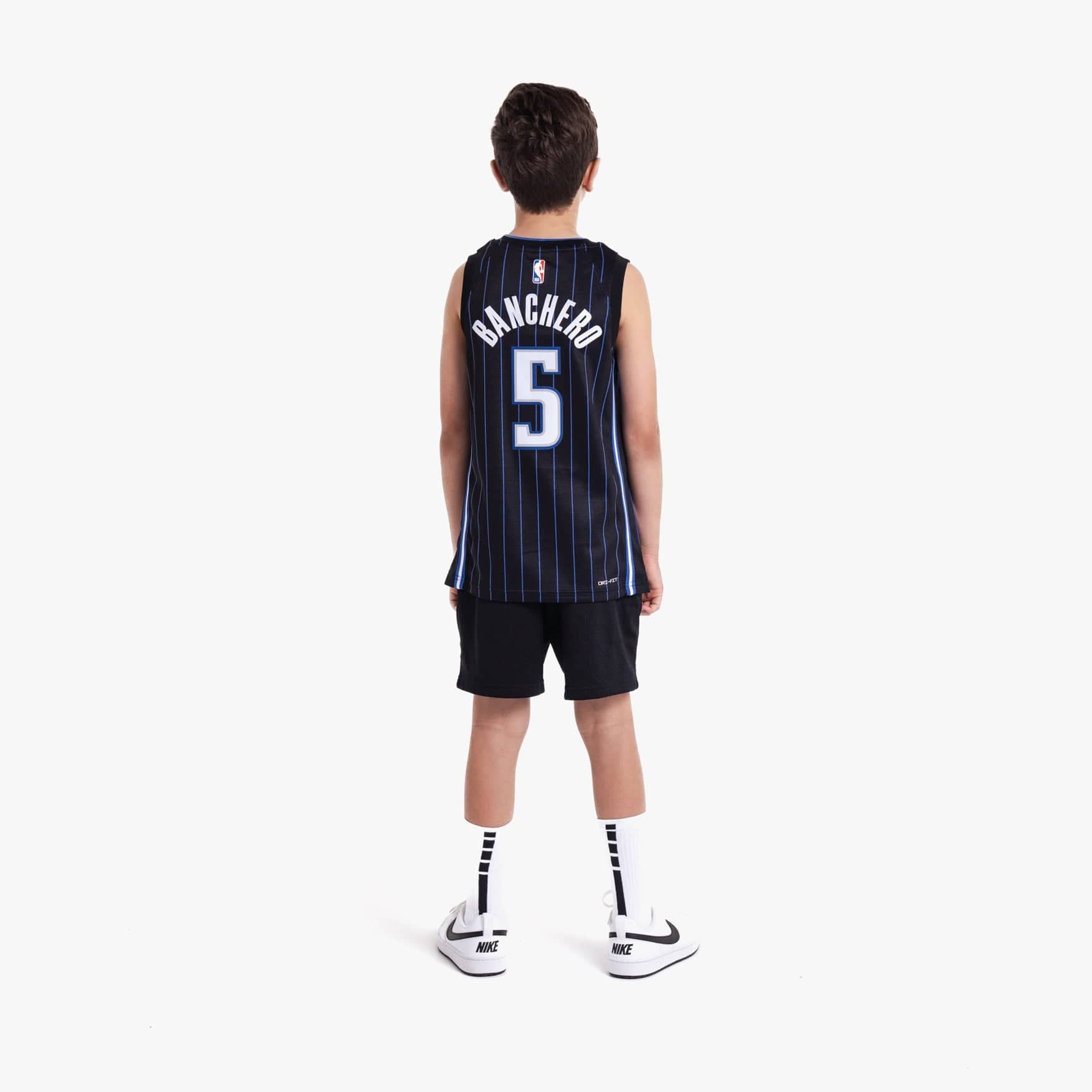 Outfit your young fan in this Paolo Banchero Orlando Magic 2023-2024 Icon Edition Youth NBA Swingman Jersey. Crafted with breathable, quick-drying fabric and official team branding, this jersey offers a lightweight replica design for comfortable fan wear. Showcase the next generation of basketball stars with the iconic NBA logo and Paolo Banchero's name and number on the back.