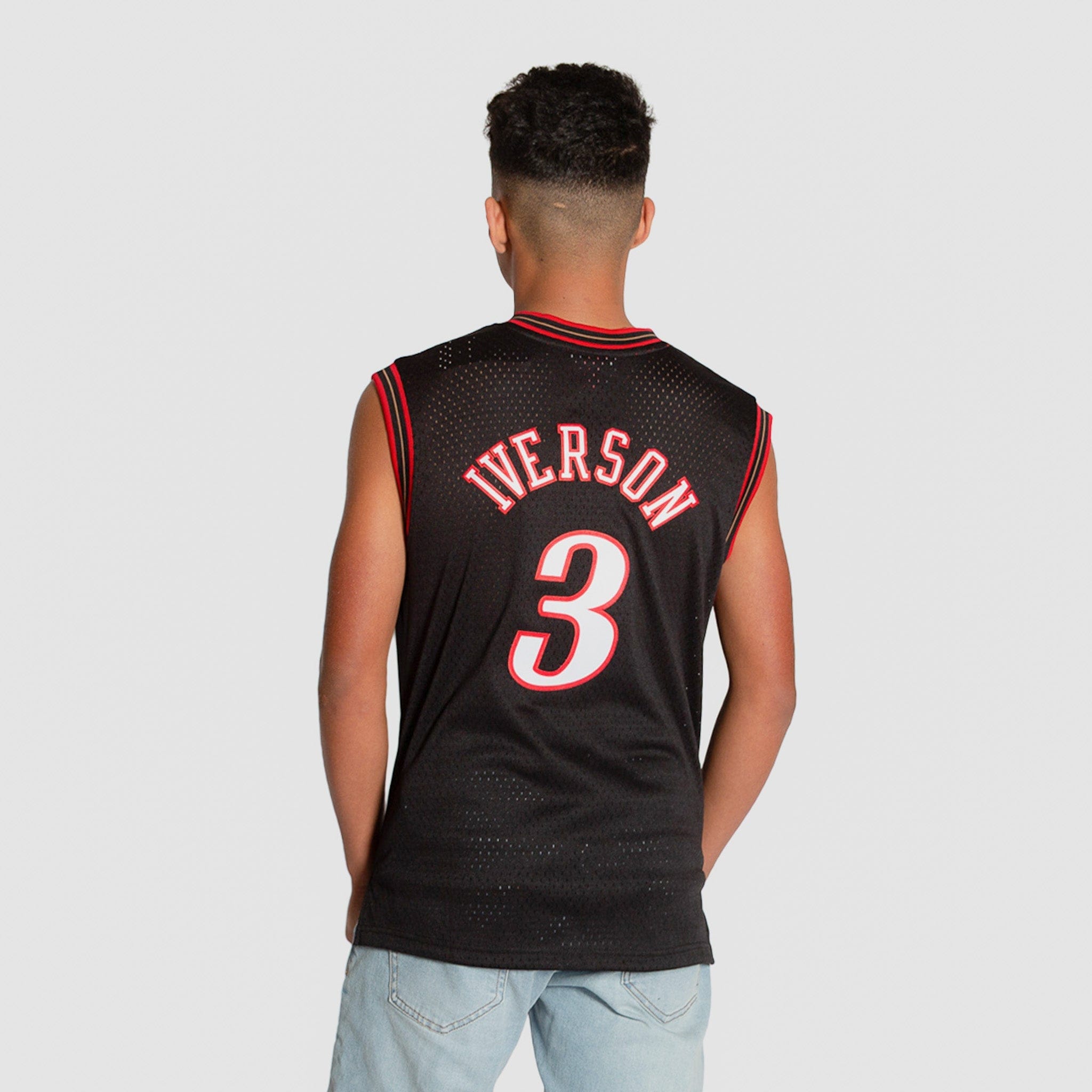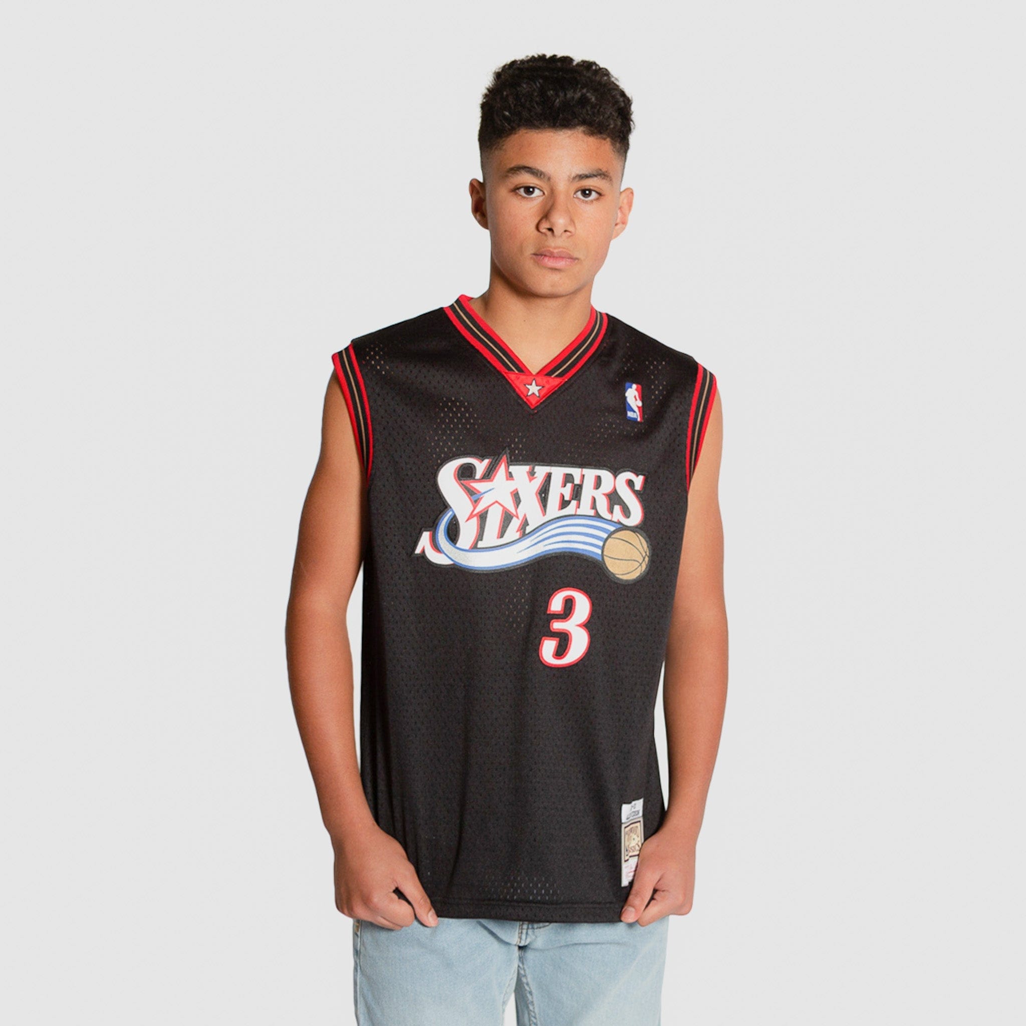 Inspired by the jerseys worn by the legends of the NBA, this NBA Hardwood Classic Throwback Black Swingman jersey is constructed to resemble the way Allen Iverson wore his jersey during the 2000-2001 season with the Philadelphia 76ers. Whether it’s playing an evening pickup game or wearing to your favorite team’s next matchup, this jersey is crafted with a wearable everyday fit, featuring stitched name & numbers and a mesh body for breathability throughout activity. This jersey is sized for youth/kids; women may need to size down accordingly based on length and fit. Rep A.I. "The Answer" with this Allen Iverson Philadelphia 76ers HWC Mitchell & Ness Youth NBA Black Swingman Jersey.