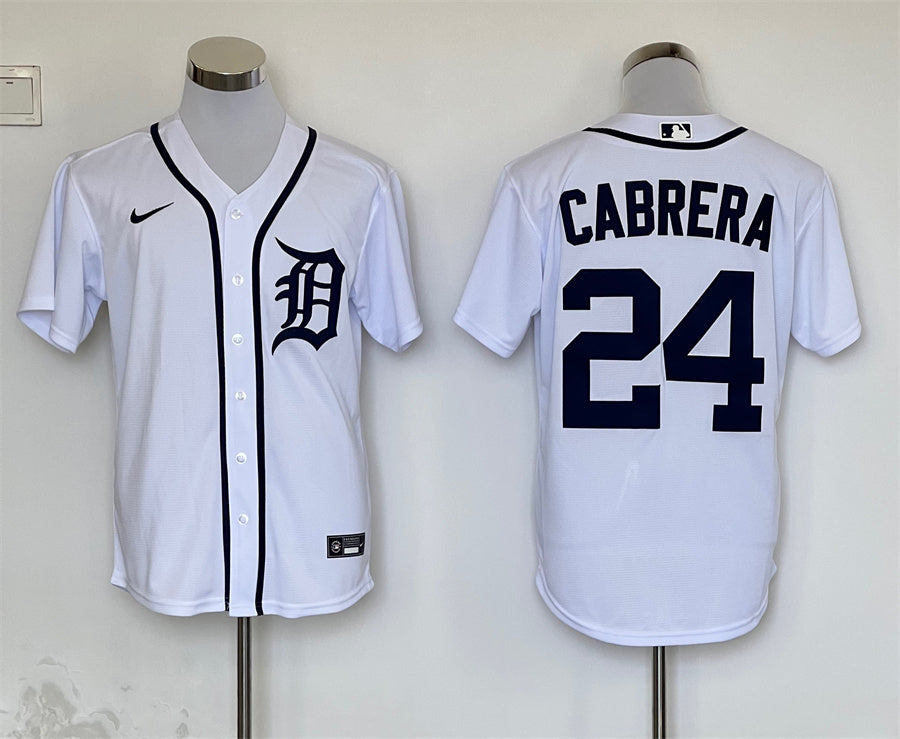 Men's Detroit Tigers Miguel Cabrera #24 White Replica Baseball Jersey