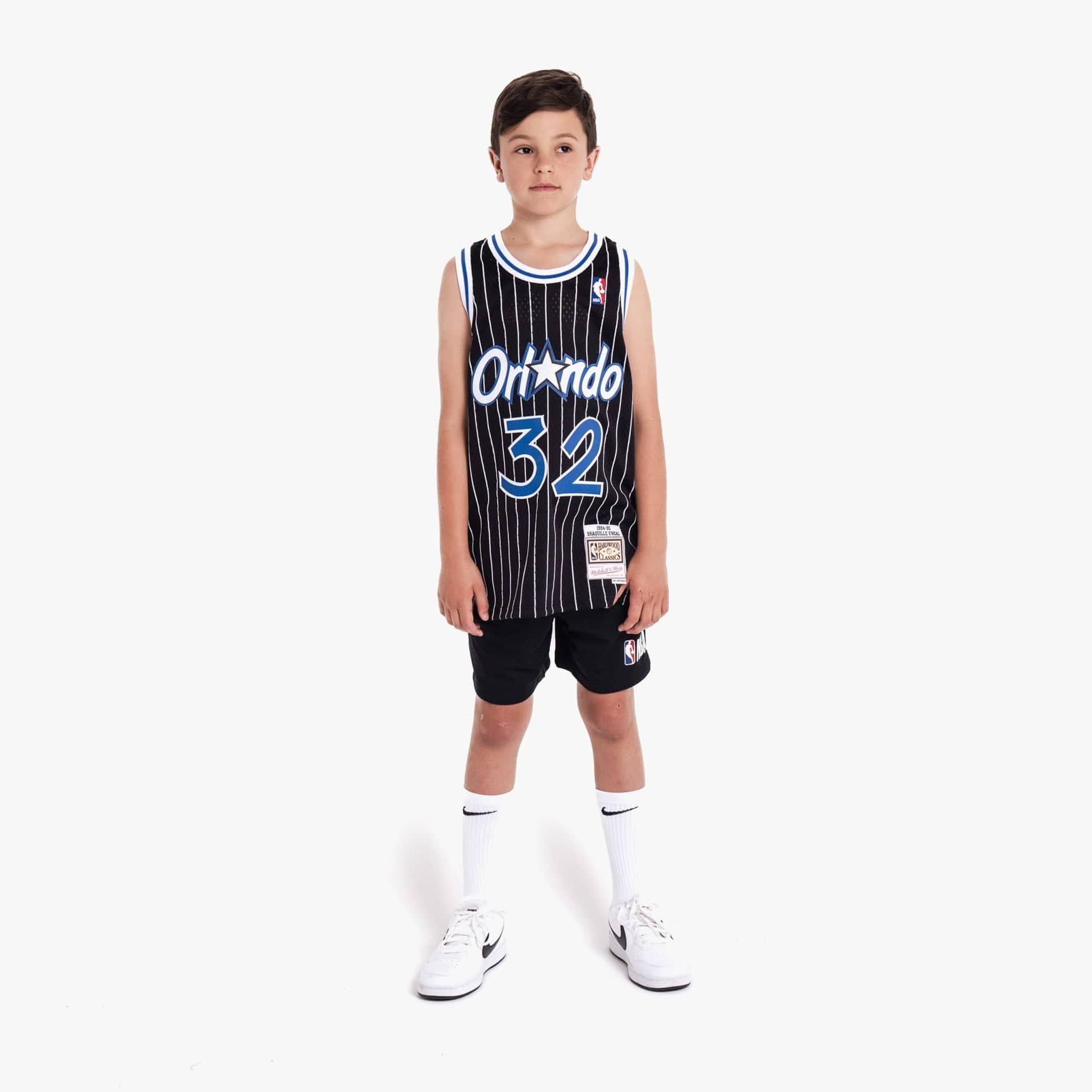 Inspired by the jerseys worn by the legends of the NBA, this NBA Hardwood Classic Throwback Black Pinstripe Swingman jersey is constructed to resemble the way Shaquille O'Neal wore his jersey during the 1994-1995 season with the Orlando Magic. Whether it’s playing an evening pickup game or wearing to your favorite team’s next matchup, this jersey is crafted with a wearable everyday fit, featuring stitched name & numbers and a mesh body for breathability throughout activity. This jersey is sized for youth/kids; women may need to size down accordingly based on length and fit.