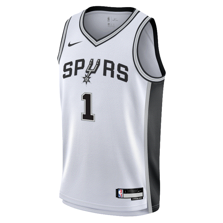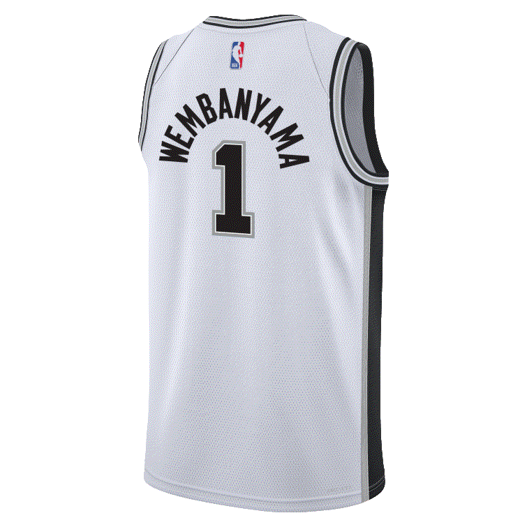 Have your little ballers rep their squad and cheer on their favorite star with the Victor Wembanyama San Antonio Spurs 2023-24 Association Edition Swingman Youth Nike NBA White Jersey, which features sweat-wicking double-knit fabric that is lightweight yet durable - designed specifically to help keep the little ballers cool, heat applied twill name and numbers with no stitch as well as design details that demonstrate your love for the game!