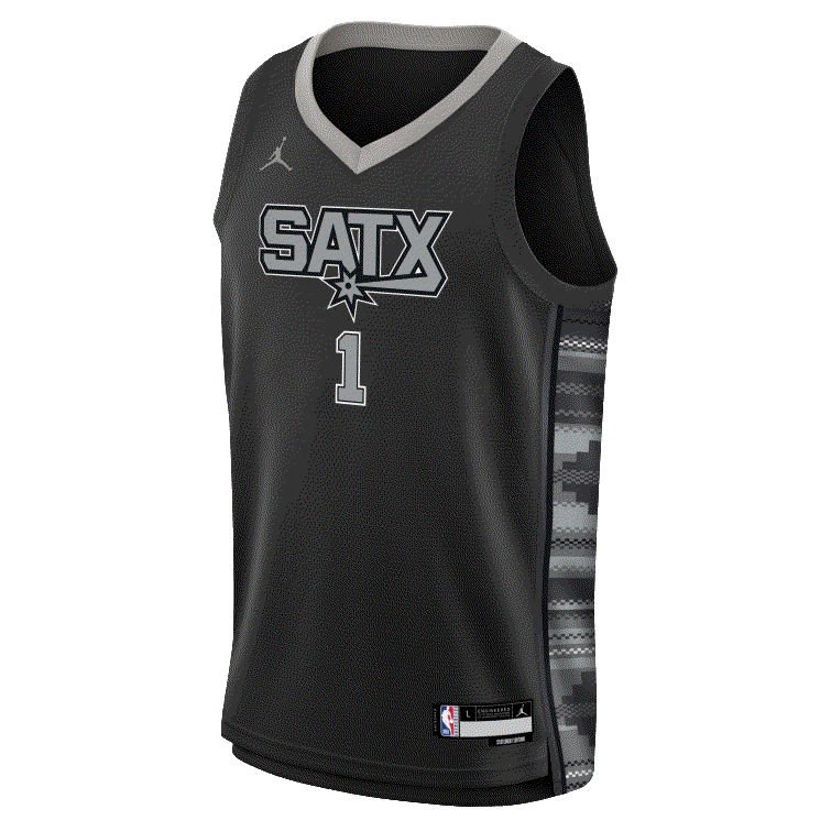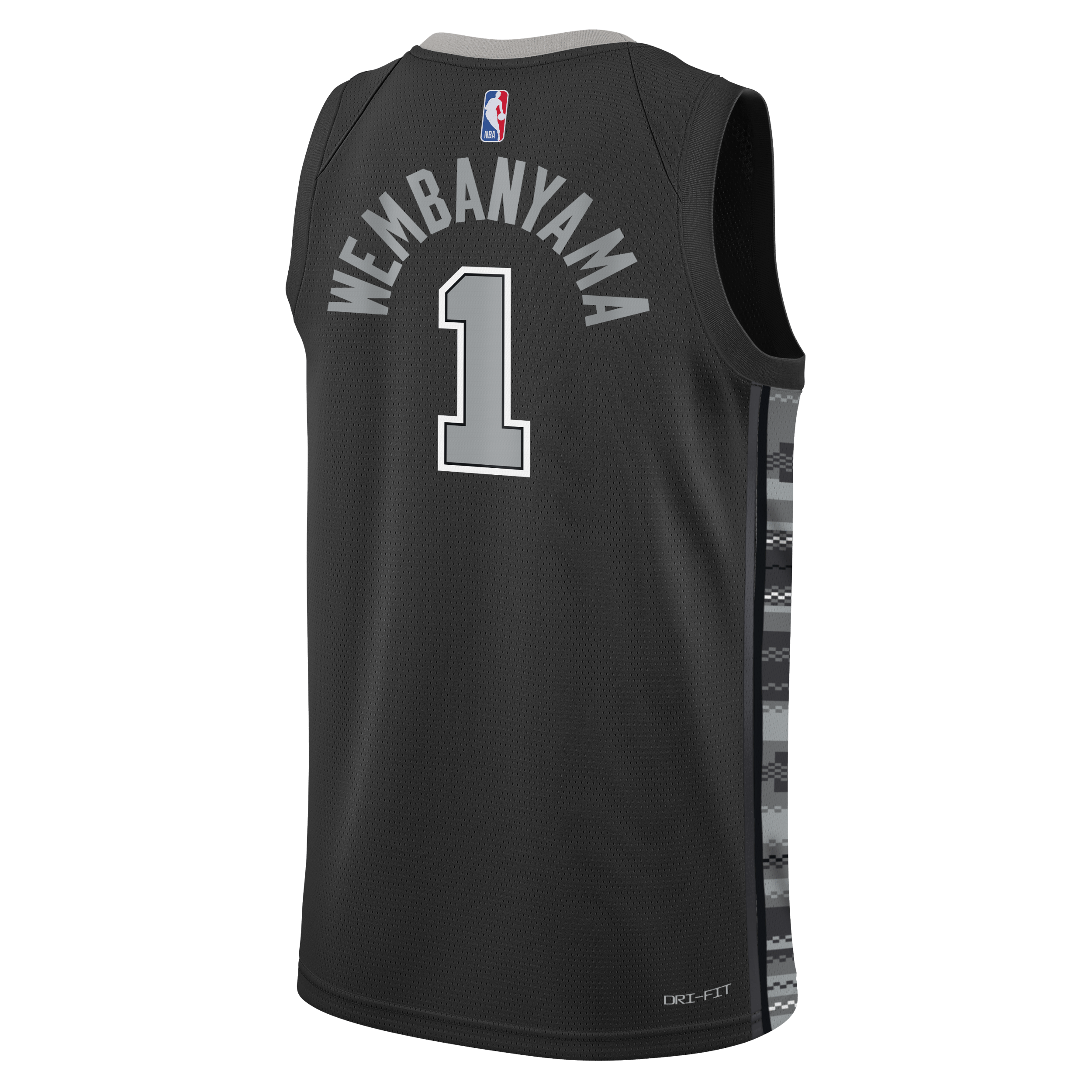 Have your little ballers rep their squad and cheer on their favorite star with the Victor Wembanyama San Antonio Spurs 2023-24 Statement Edition Swingman Youth Nike NBA Black Jersey, which features sweat-wicking double-knit fabric that is lightweight yet durable - designed specifically to help keep the little ballers cool, heat applied twill name and numbers with no stitch as well as design details that demonstrate your love for the game!