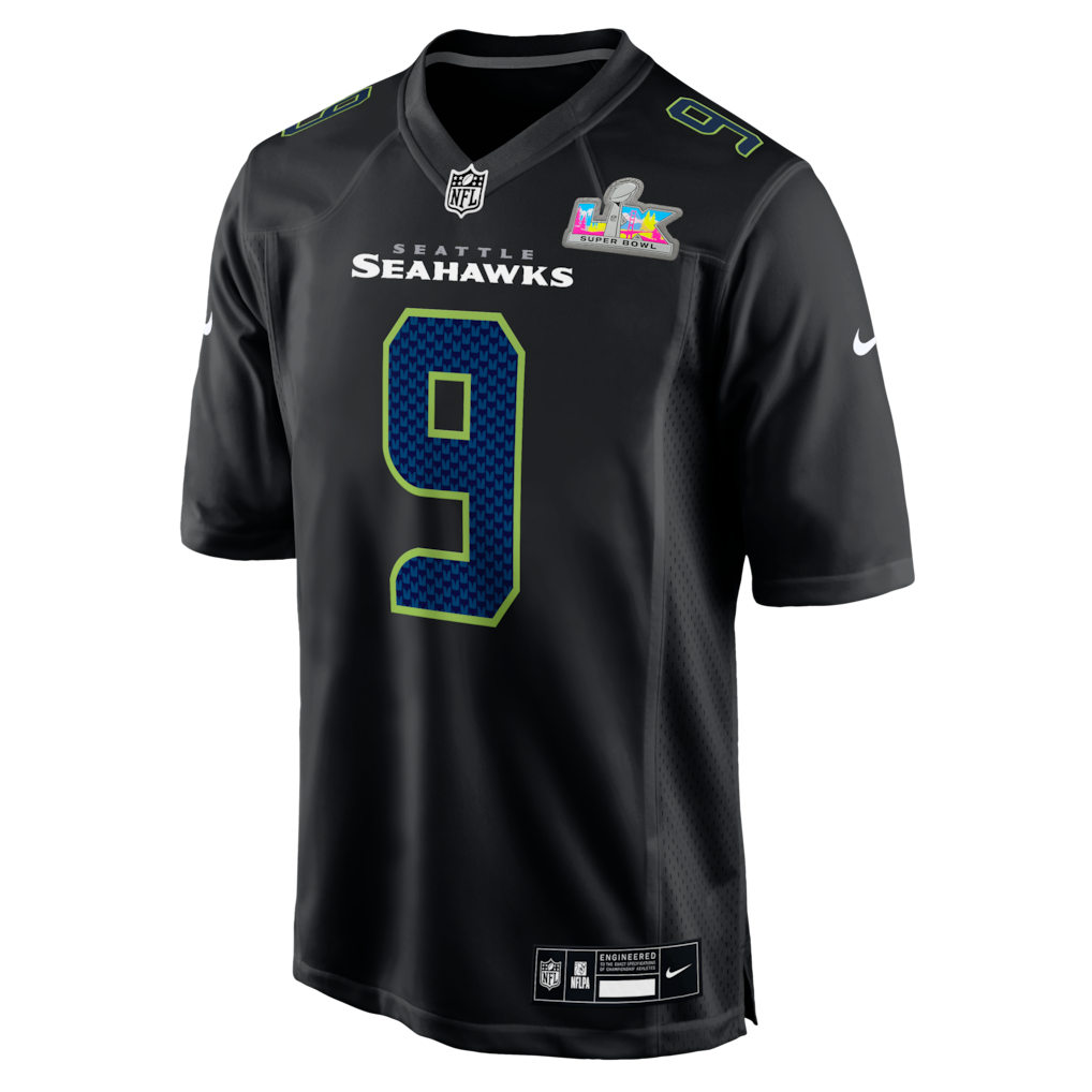 Men's Seattle Seahawks Jaxon Smith-Njigba Black Super Bowl LX Patch Carbon Fashion Game Jersey