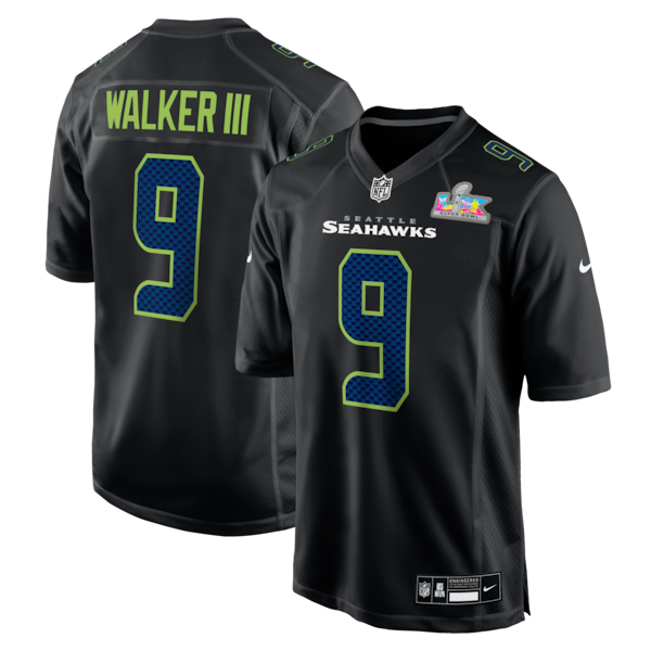 Men's Seattle Seahawks Kenneth Walker III Black Super Bowl LX Patch Carbon Fashion Game Jersey